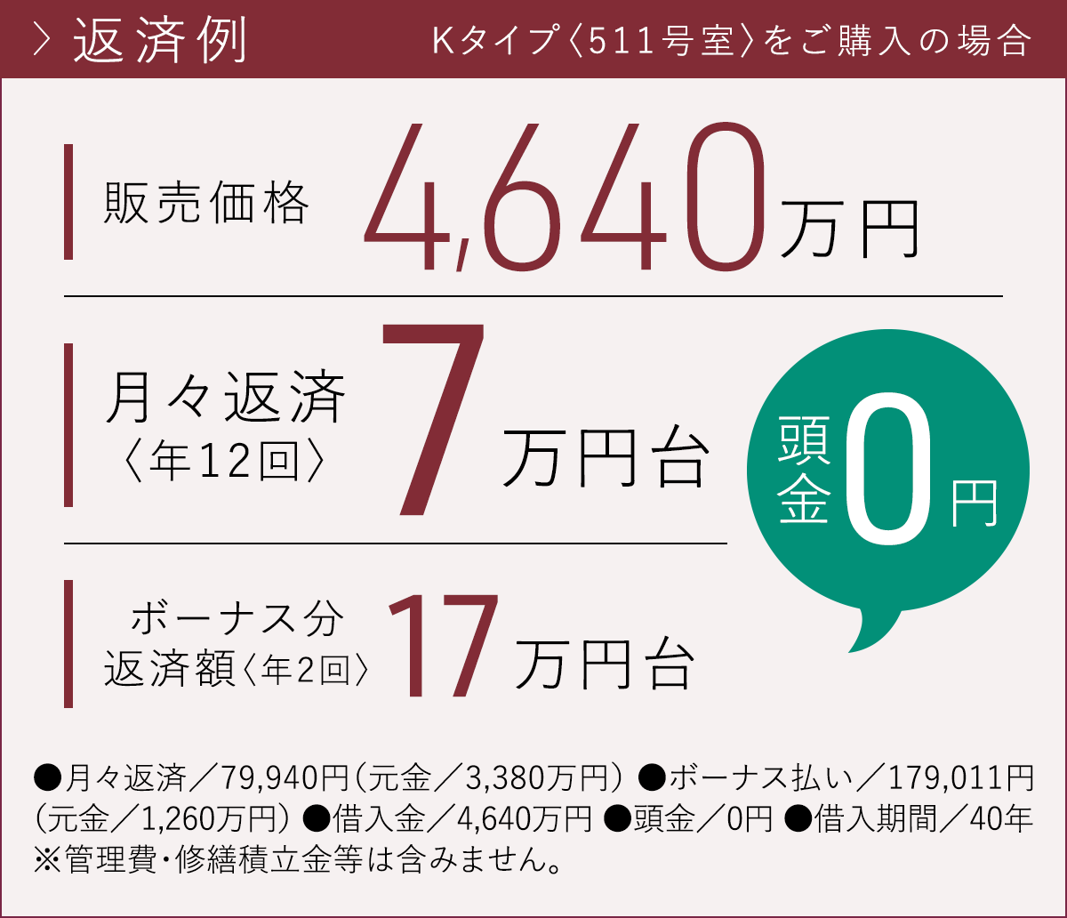 ■提携ローンのご案内 ●提携金融機関/住信SBIネット銀行●利率/年利0.647%(変動金利、店頭金利3.275%より最大-2.628%)※ローンご利用においては事前審査が必要となり、個別要件等により融資条件が異なります。適用される金利は融資実行時のものとなり、表示されている金利・返済額と異なる場合があります。※金利については2025年12月適用のものです。