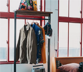 衣服は棚に仕舞うだけでなく、お気に入りのアイテムを、見せるインテリアとしてレイアウトしてみたり。自分のセンスで空間を彩るのも魅力的です。