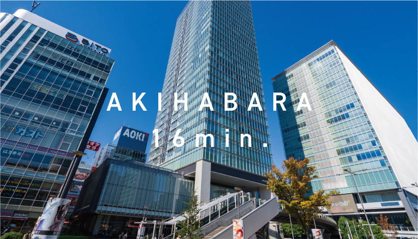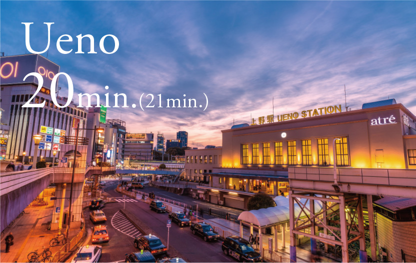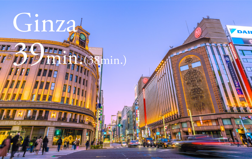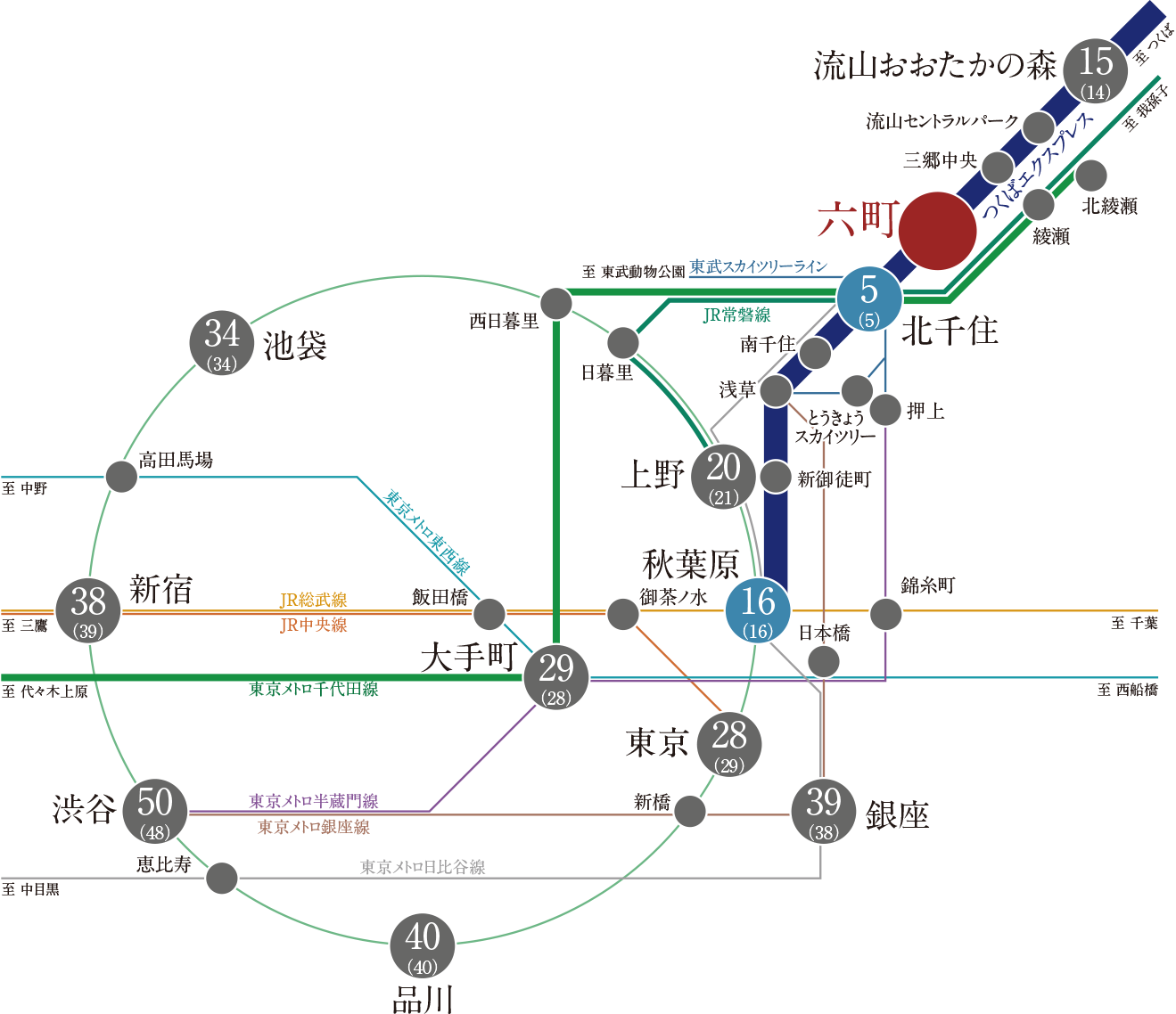(つくばエクスプレス利用、北千住駅より東京メトロ日比谷線利用。)