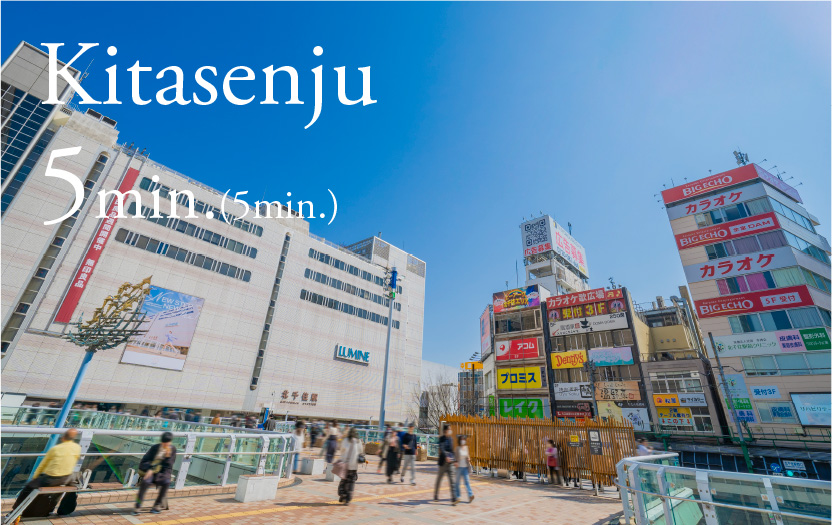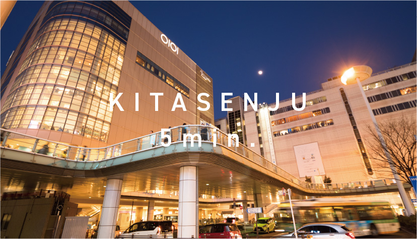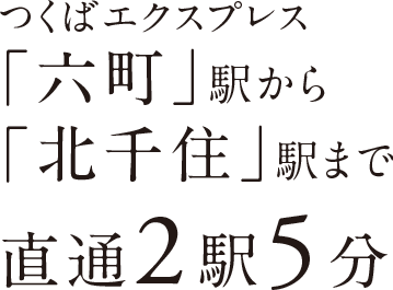 最寄りのつくばエクスプレス「六町」駅から5路線が乗り入れるターミナル駅「北千住」駅まで2駅5分。