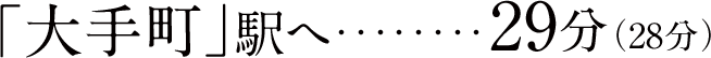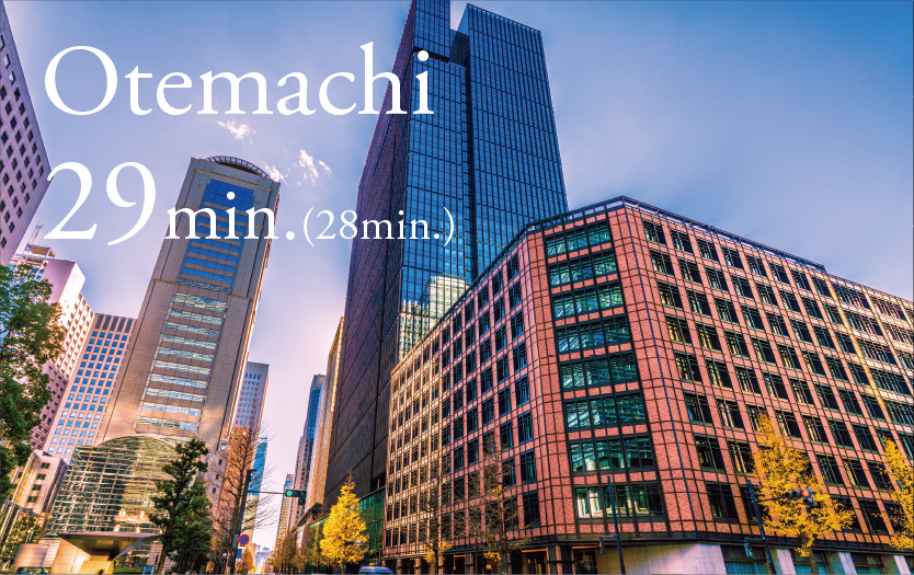 つくばエクスプレス区間快速利用、北千住駅より東京メトロ千代田線利用、大手町駅より東京メトロ丸の内線利用。
