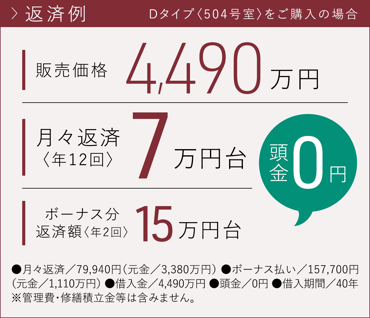 ■提携ローンのご案内 ●提携金融機関/住信SBIネット銀行●利率/年利0.647%(変動金利、店頭金利3.275%より最大-2.628%)※ローンご利用においては事前審査が必要となり、個別要件等により融資条件が異なります。適用される金利は融資実行時のものとなり、表示されている金利・返済額と異なる場合があります。※金利については2025年12月適用のものです。